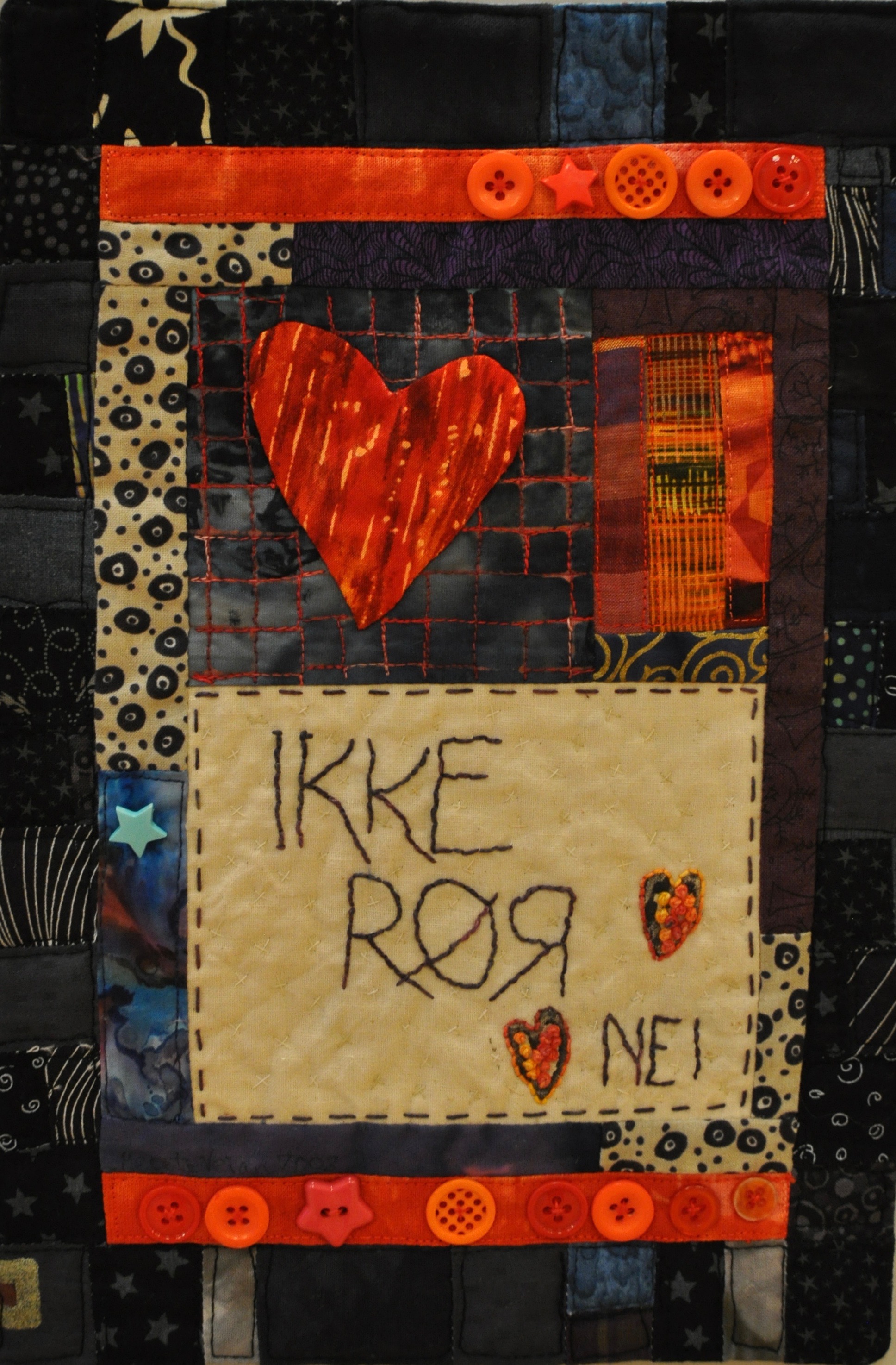 Vi ønsker stor bredde og variasjon når det gjelder format, uttrykk og teknikk. Øverst på baksiden av quilten monteres en standard opphengskanal, nesten så bred som quilten og 10 cm høy.